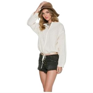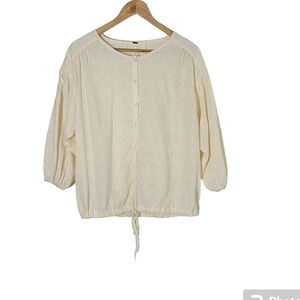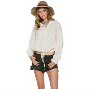 FREE PEOPLE Stars Align Long Sleeve Button Down Cotton Eyelet Top Size M