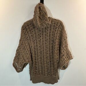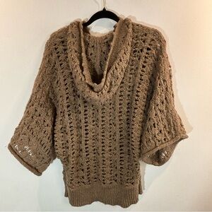 FREE PEOPLE Sz M Open Weave Crochet Style Hooded Pull On 3/4 Sleeves Sweater Top. Contains alpaca. Super soft and cute. Perfect for layering. Beachy. Coastal grandma. Bohemian. Lagenlook. Slightly oversized. Rich brown colour.