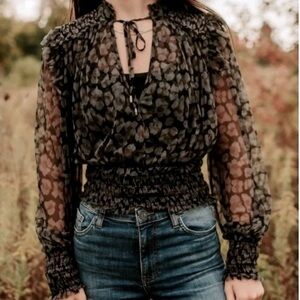 FREE PEOPLE TWYLA SPOTTED PRINT BLOUSE - Size XS