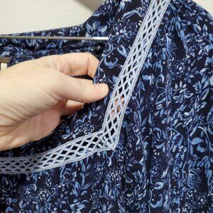 Keywords: floral flower sheer pretty feminine dark romantic preppy boho bohemian fairycore whimsical lightweight ditzy peasant farmhouse oversized relaxed