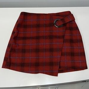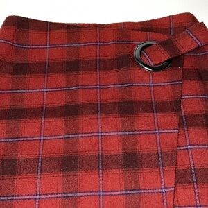 FREE PEOPLE Tessa Red Plaid Faux Wrap Mini Skirt Size 0