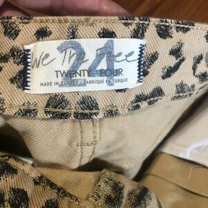 NWT Vintage inspired denim shorts in an animal print pattern from Free People’s We The Free Collection • High-rise silhouette • Pleated detail • Raw hem • Can be worn cuffed • Double clasp + zipper closure • 4-pocket style • Belt loops • 55% Cotton / 45% Lyocell