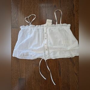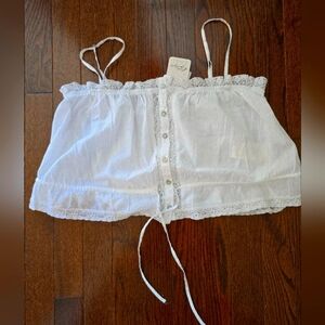 FREE PEOPLE White Lace Trimmed Crop Top Delicate Spagetti Straps Cotton Size M