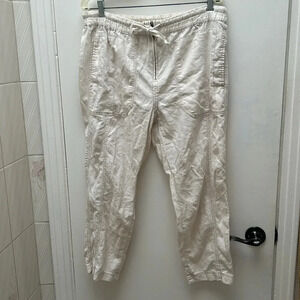 Linen Blend Capri Cropped Elastic Waist Band Pants