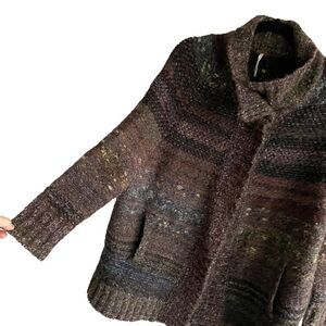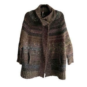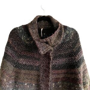 FREE PEOPLE Wool Starlight Shadow Long Poncho Sweater Cardigan Brown XS
