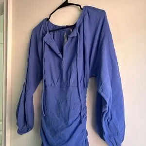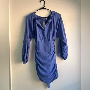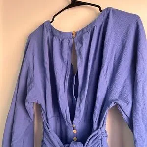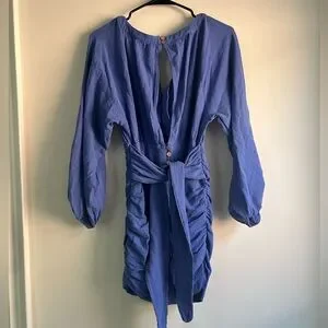 FREE PEOPLE - “only you” mini dress. Long sleeves with button up closure and tie up back detailing. Colour is more of a purple/blue than it looks in photos. Worn once, perfect condition.