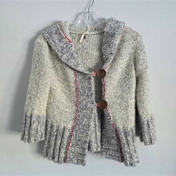 Selling FREE PEOPLE | hooded button-front cardigan sweater gray cream wool blend Sz M.