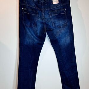 FREE PLANET Mens Dark Wash Whiskered Jeans with 2% Spandex 34/30