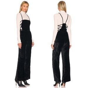 FREE People 90s Forever Overall Black Velvet Wide Leg Jumpsuit - Size Large