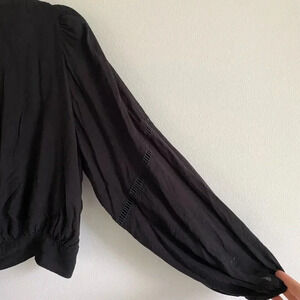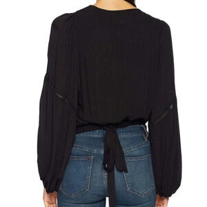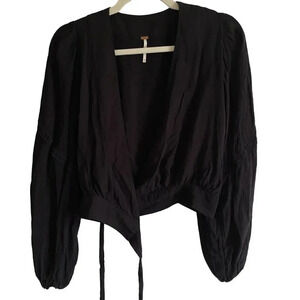 FREE People Black Dream Girl Wrap Puff Sleeve Tie Crop Blouse Size XS