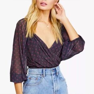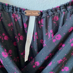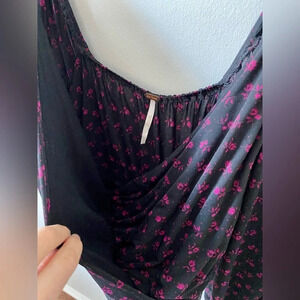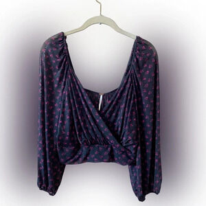 FREE People Black & Purple Floral Crop V-Neck Top Size Small