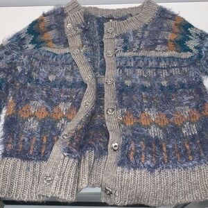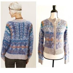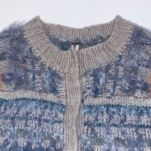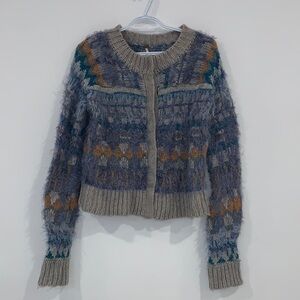 Free People blue Wool Alpaca Nordic party fuzzy cardigan size Medium