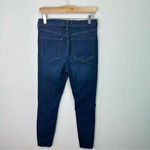 Free People High Rise Busted Knee Distressed Skinny Jeans. Dark blue. Zip up button closure. EUC. Size 29