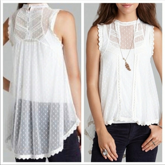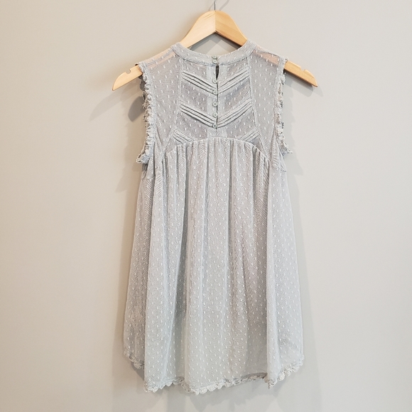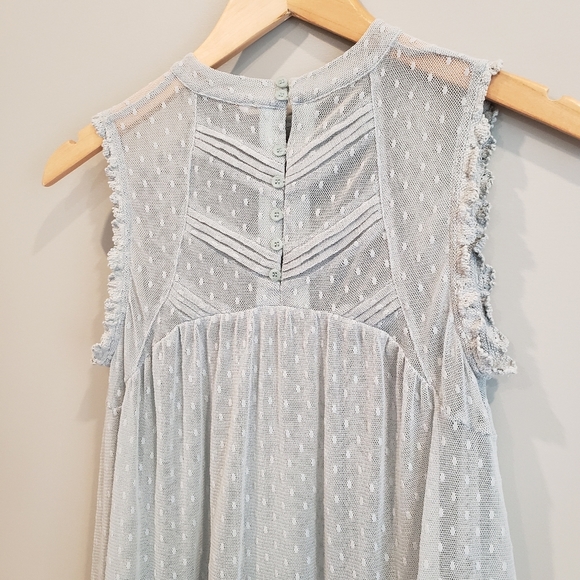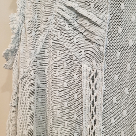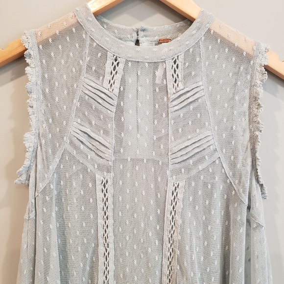 FREE People Lace Tunic Hi-Lo Crochet Hem Blue/Grey Size XS "Fiona"