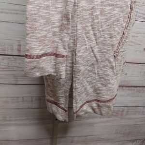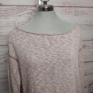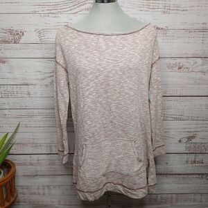Red and white space dye pattern long sleeve top with kangaroo pocket and side slits. Relaxed, oversized fit. Brand new with tags.