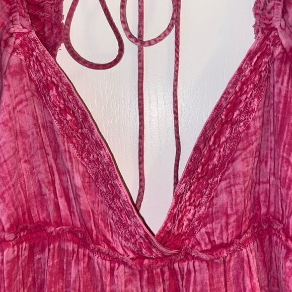 FREE People Monsoon Maxi dress with puff sleeves low cut back Size M