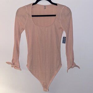 Free People Move On Bodysuit tied cuffs Blush Size Small