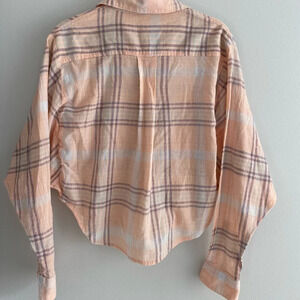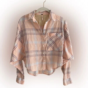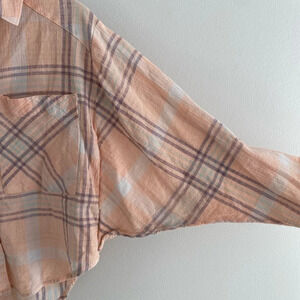 FREE People Peach purple white Cropped Boxy Fit Wide Sleeve Flannel Shirt S