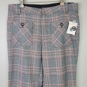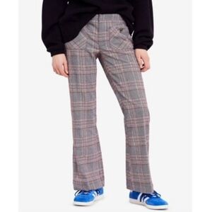 FREE People Plaid Boot Cut Pants Trousers Mid Rise Tartan Gray Red 4 NEW