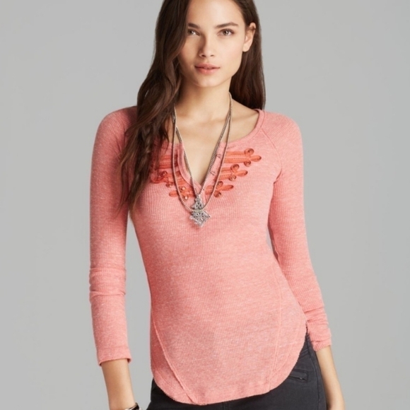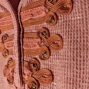 Best Selling We the Free - Free People Battalion Thermal!3 hook and eye closures on the front accented by a military style enmbroidery. Slim sleeves and scooped at the bottom. Seams on the sides make it very flattering. Size XSmall.
