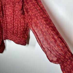 Free People Roma Floral Chiffon Smocked Puff-Sleeve Blouse XS