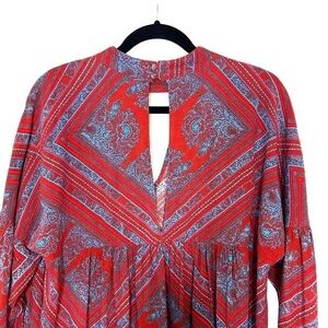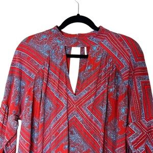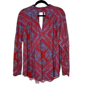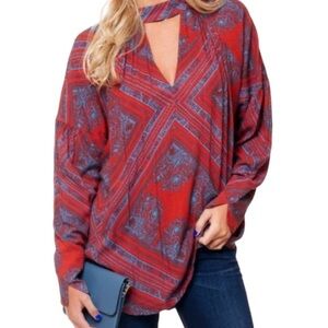 Free People OB618347 Blouse Tunic Indonesia Womens Keyhole Button Closure Classic Fit 100% Rayon Multi-Tone All Seasons Medium Weight Long Sleeve Casual Modern, Additional Details: Multi-toned casual long sleeve tunic , Double button & loop closure at back , Chocker neckline; keyhole at back & front , Printed throughout; hi-lo hemline.