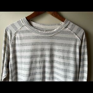 FREE People We The Free Grey And White Long Sleeve Striped T-shirt