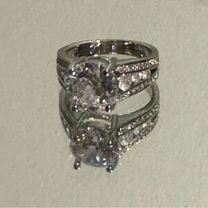 2 carat premium cubic zirconia (CZ) with side accents and 3 smaller stone cuts channeled on each side of the solitaire.