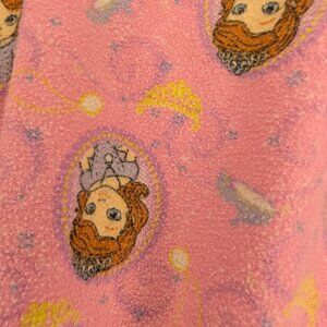 ✂️ Fit & Features: Two piece pink pyjama set featuring purple trim and Sofia the First print.