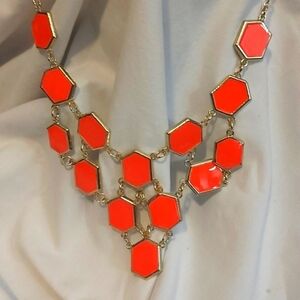 Gold with Coral and Navy Blue enamel geometric designs