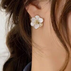 FREE đź’—With Purchaseđź’— Gold Plated White/Cream Enamel Floral Stud - NEW