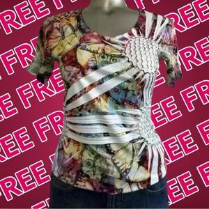 NWOT Brand New🆕 Butterfly tie dye print, multi coloured top Polyester/Nylon/Spandex fabric Pit to pit 17” Length from shoulder 24” Questions? Leave a comment below! 🌸 l accept all reasonable offers 🌸