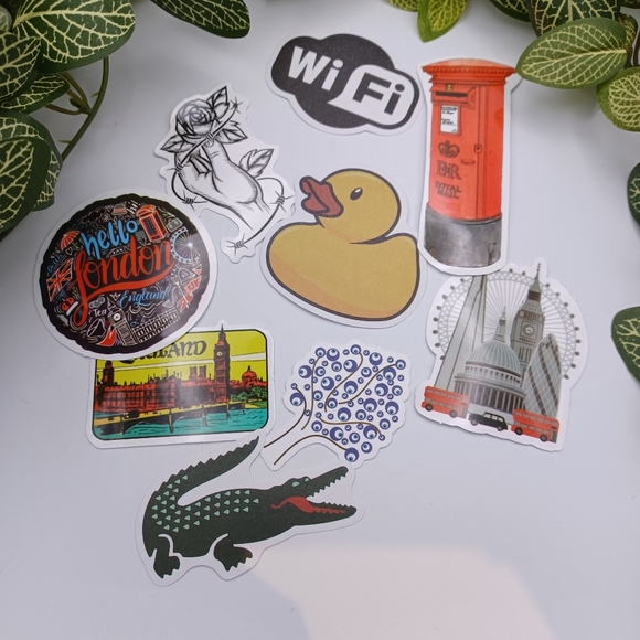 Fun and vibrant assorted stickers. Includes iconic landmarks and symbols from London and other imagery. Perfect for decorating notebooks or laptops. Includes matt and gloss finish stickers.