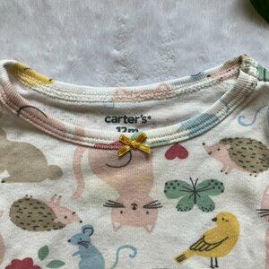 baby girl shirt, baby girl top, Carter’s 12M, woodland print, bunny shirt, hedgehog shirt, fall baby clothes, animal print top, baby girl long sleeve, everyday baby outfit, play clothes, free with purchase baby clothes