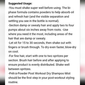 - Travel/trial sized Mini Pret-a-Powder Post Workout Dry Shampoo Mist