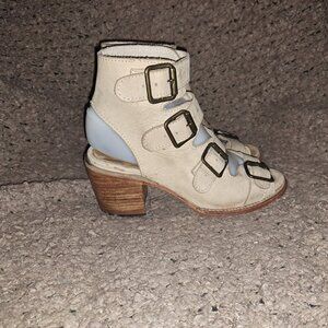 FREEBIRD BY STEVEN-Quail-Beige Leather Sandals Gladiator Wood Heel-Sz6-Excellent