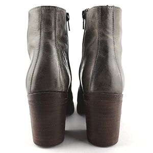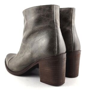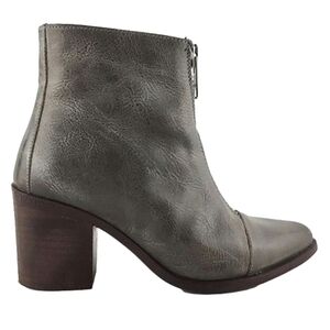 FREEBIRD Clair Ankle Boots Grey Distressed Leather Front Zip Stacked Heels Sz 6
