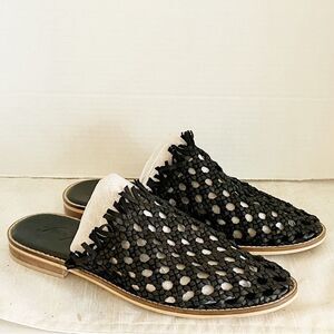 FREE PEOPLE Mirage Woven Black Leather Mules Sz 40 US 10