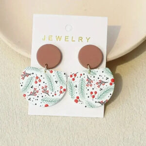 FREEđź’—With Purchaseđź’—Holly Branch Print Holiday Christmas Earrings - Resin - NEW