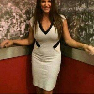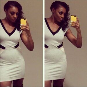 FRENCH CONNECTION Bodycon Dress Color Block Cap Sleeve Vneck Fitted