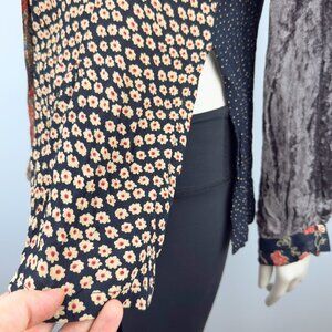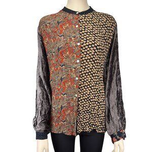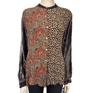 FRENCH CONNECTION Boho Patchwork Multicolor Floral Dot Button-Up Shirt Blouse L