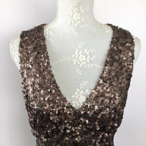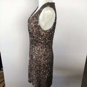 FRENCH CONNECTION Lucinda Brown Bronze Fitted Fully Sequinned Mini Dress US 8