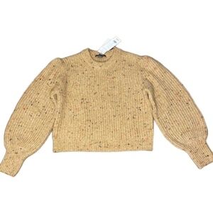 FRENCH CONNECTION Natlalya Ribbed Camel Multi Alpaca Wool Blend Light Academia Puffy Sleeves Ski Lodge Sweater