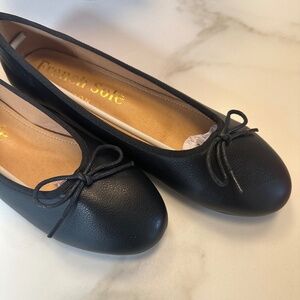 FRENCH SOLE Lola Black Leather Round Toe Ballet Flats - EUR 42