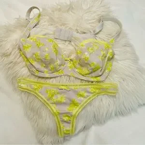 New with tags condition. Bra is 32 DD. and panties are size xs. Gorgeous vibrant design and color