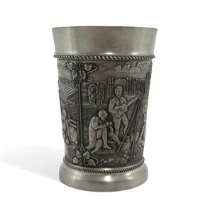 FRIELING-ZINN PEWTER Decorative Cup With Embossed Design Germany Vintage 3" Tall