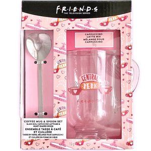 🆕 FRIENDS ~ GLASS COFFEE MUG + HEART SHAPED SPOON + LATTE MIX ~ BOX SET