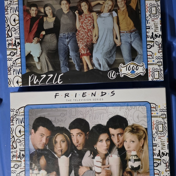 Set of two FRIENDS-themed puzzles. Features iconic cast images. Perfect for fans.
