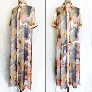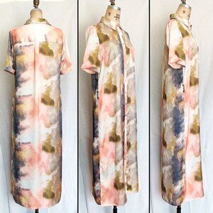 FRNCH Paris Abigail Maxi Shirt Dress in Silky Watercolor Tie Dye Print Small EUC