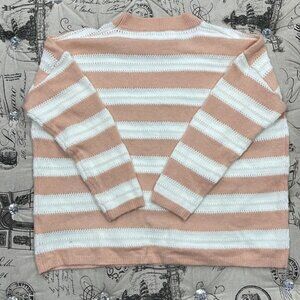 - Striped perforated ribbed knit sweater